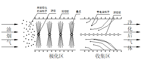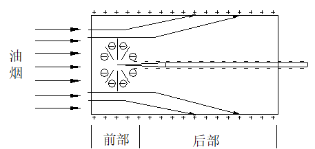生暈流,對進入的油煙進行極化,然后再經(jīng)后部